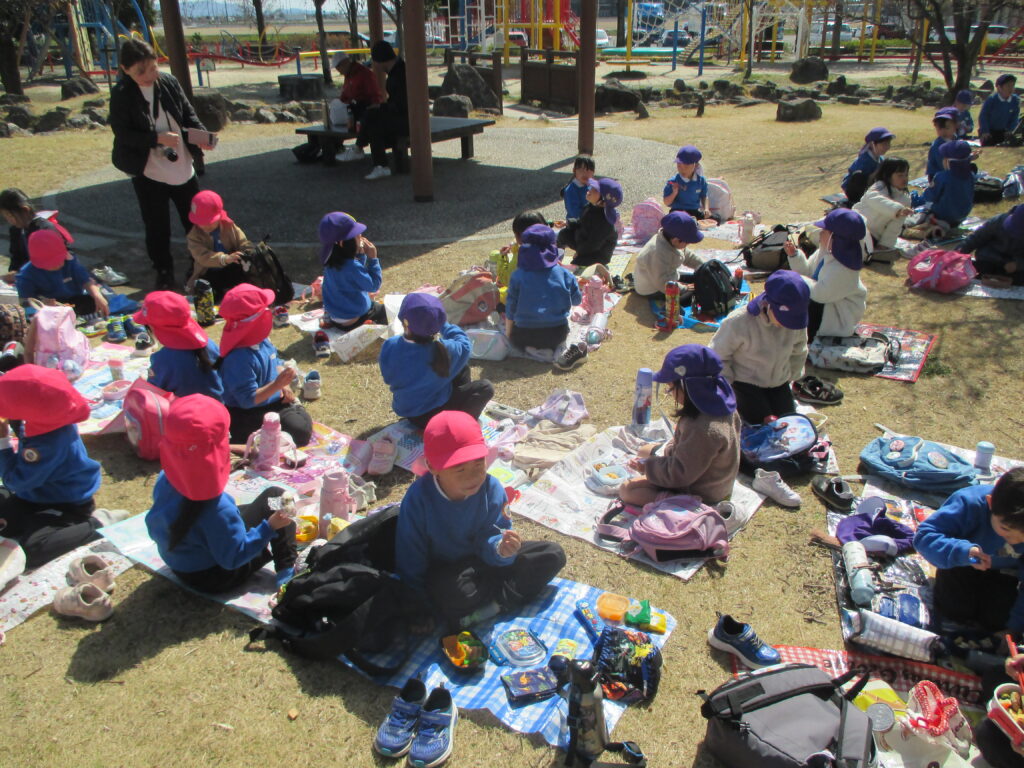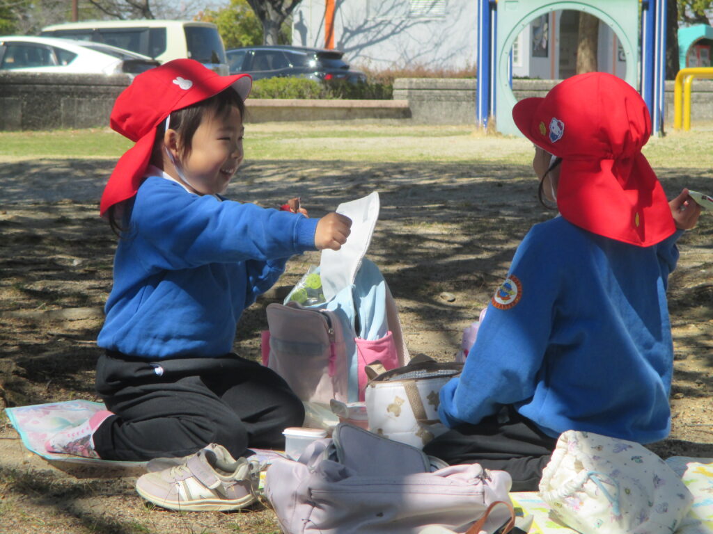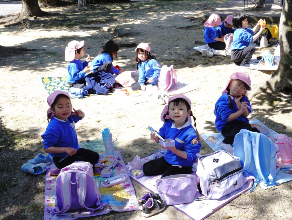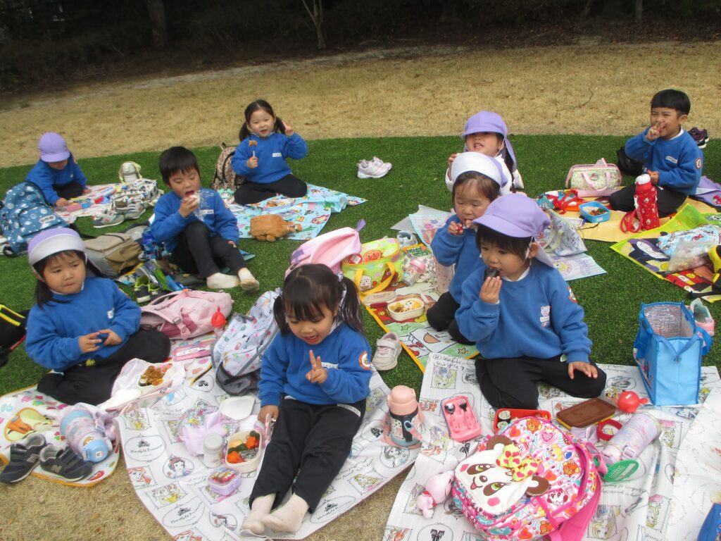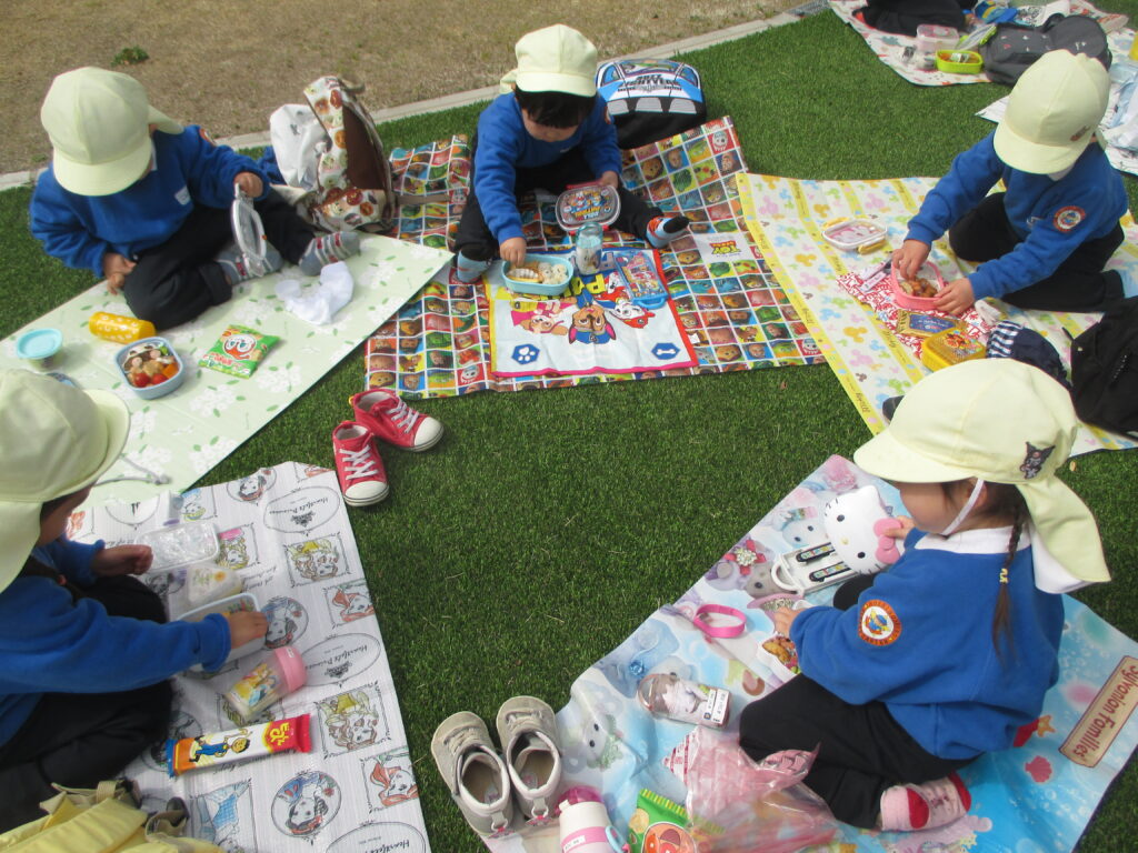 楽しみにしていたお弁当の時間。「大好きなものがいっぱい♡」「からあげ入ってる!」と、どの子も嬉しそうに食べていました。