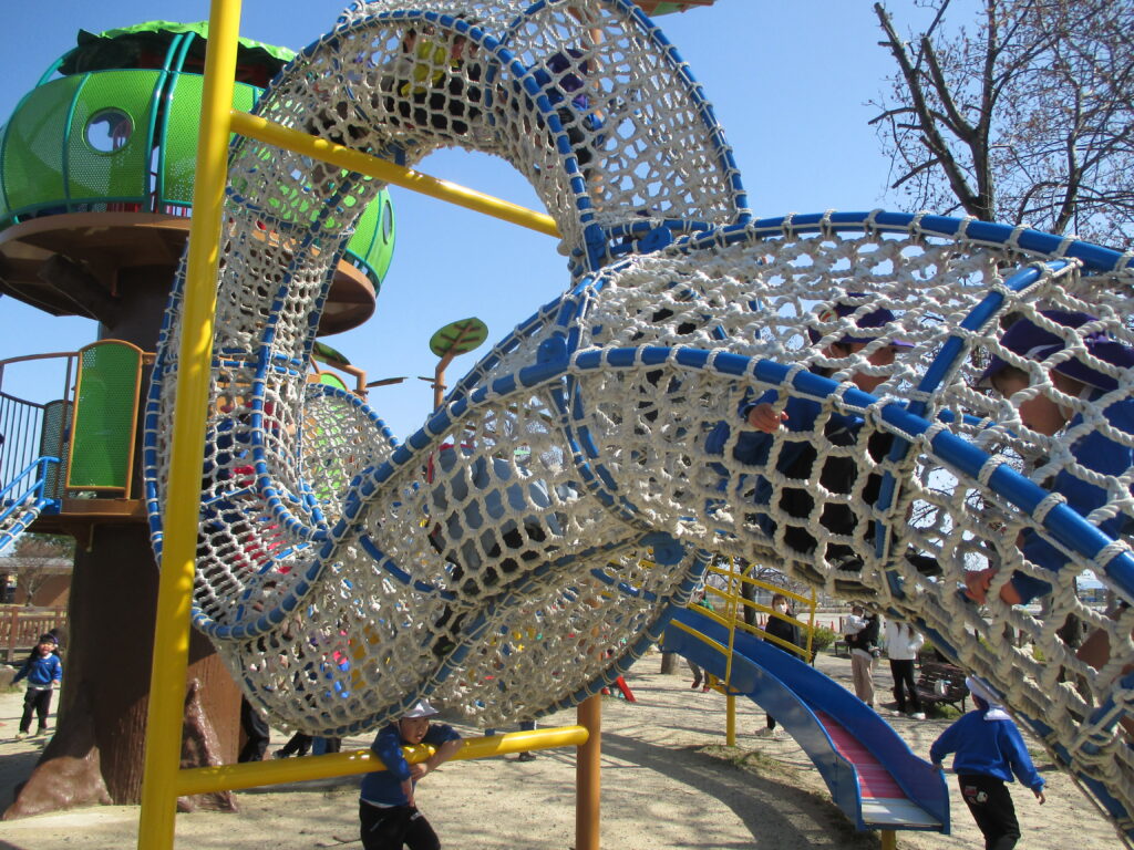 公園に到着すると、目の前には大型遊具“レインボーマウンテン”。子どもたちは目をキラキラさせて遊び始めました。