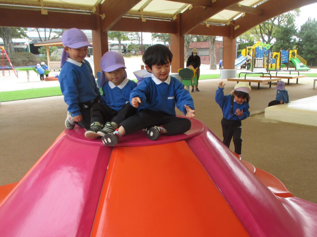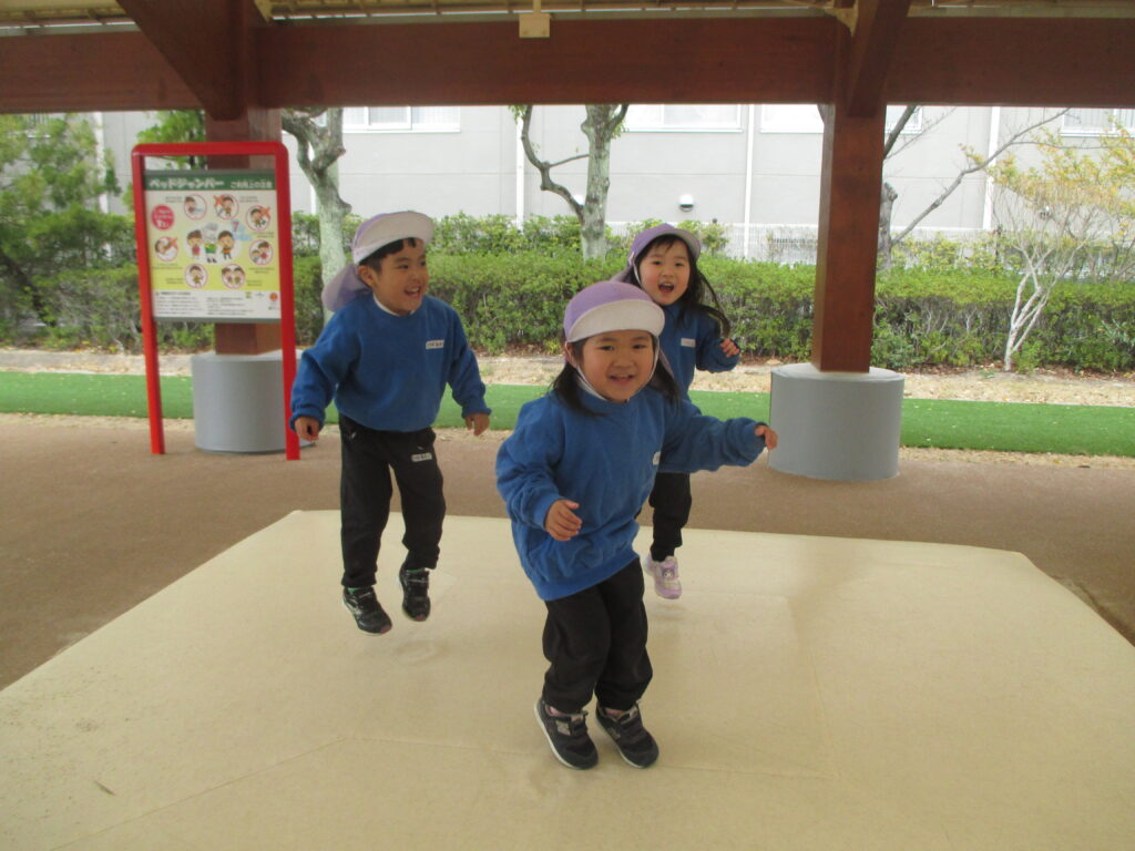 ぱかぱかぱーくに着くと、滑り台やトランポリン、ブランコなど、好きな遊具や気になった遊具で思い思いに遊びました。