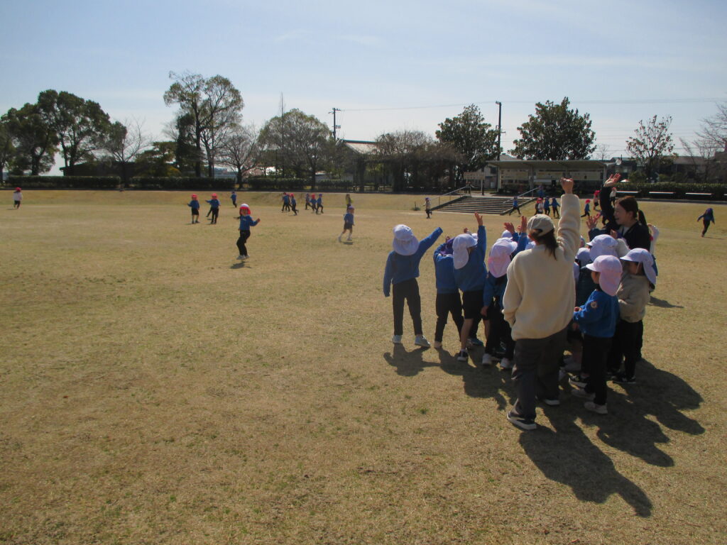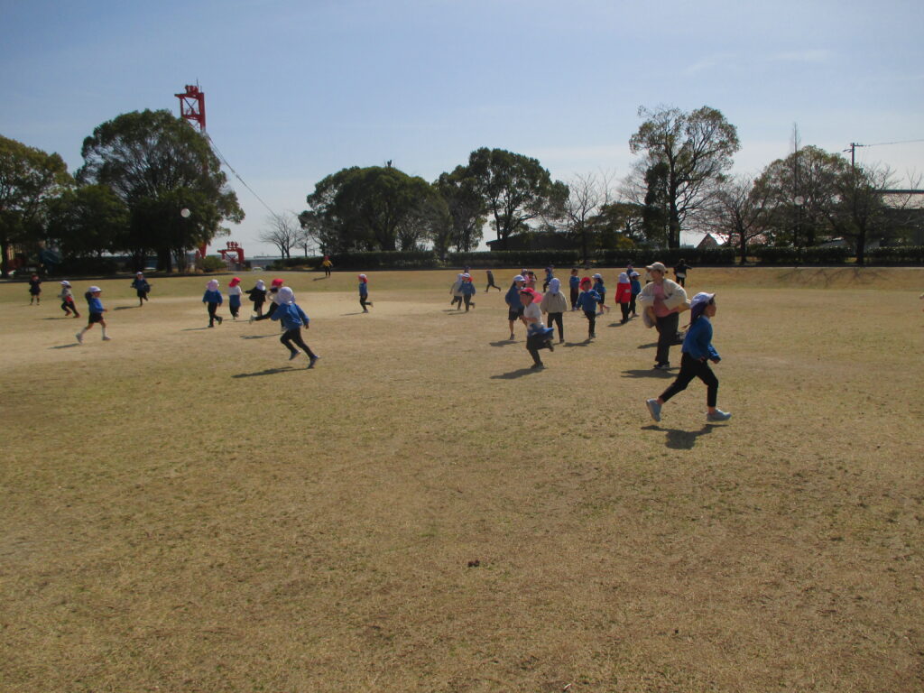 お弁当の後は、年中組みんなで鬼ごっこを楽しみました。