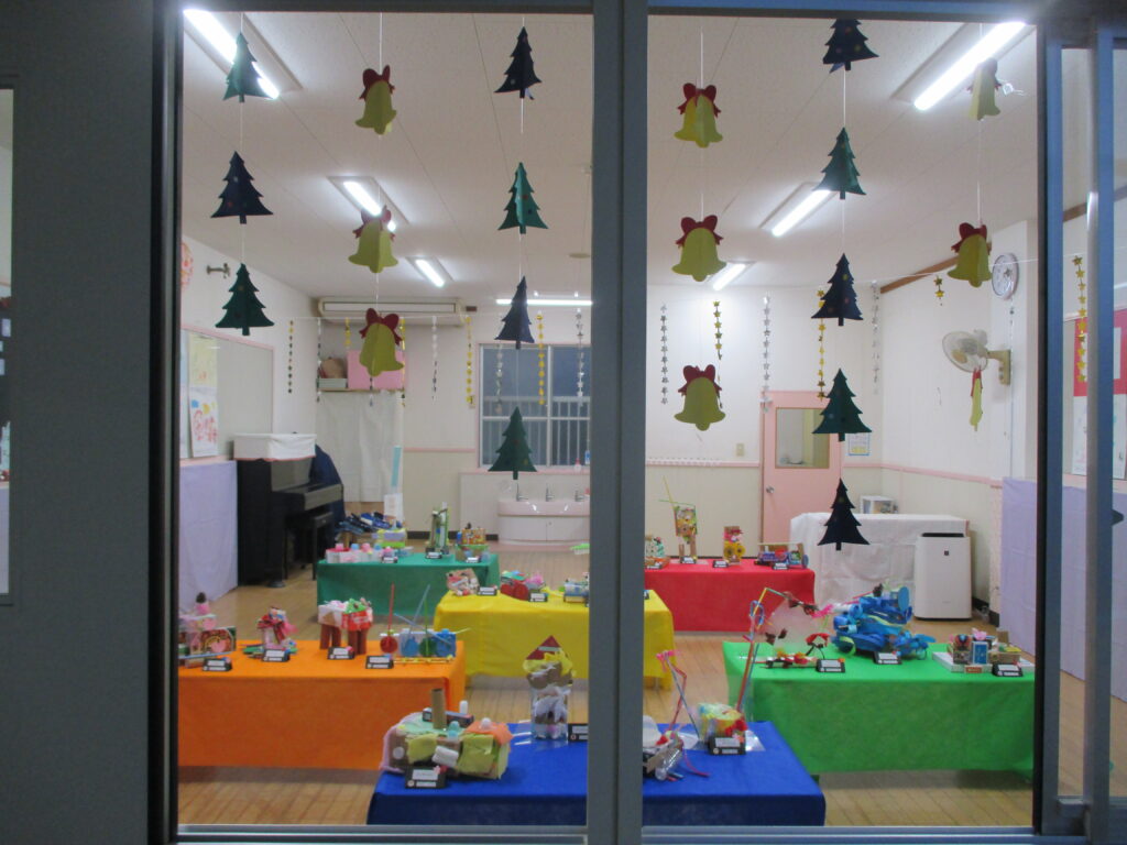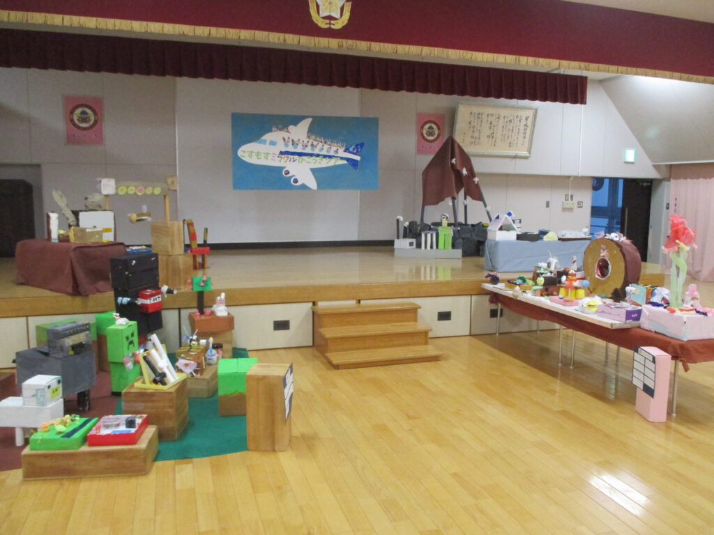 子どもたちの絵画作品や立体作品を展示する作品展を行いました。