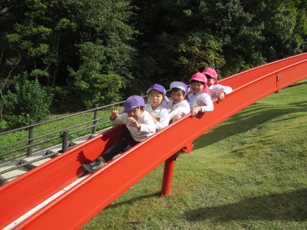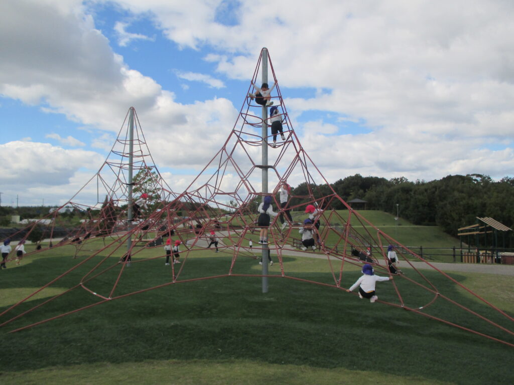 その後は、長いすべり台、アスレチックなどの遊具で体をたくさん動かして遊びました。