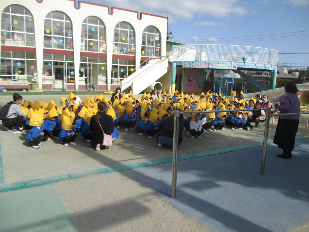 これまで繰り返し訓練してきたことで、避難にかかる時間も短くなりました。その中でも特に年長組の子どもたちは、『命を守るため』に静かに素早く避難することを意識している様子でした。